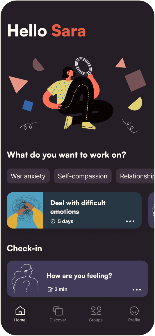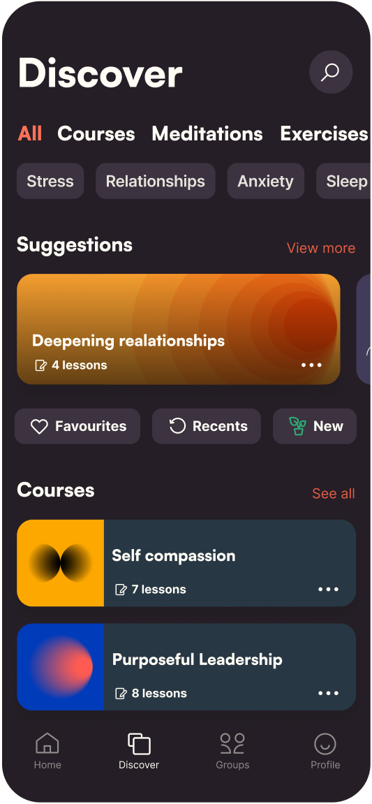 Each course begins by assigning you to a group of participants. You will laugh, cry and share your experience using chat and live video. Sounds scary? Not to worry, we utilise many proven methods to make sure we open up to one another.